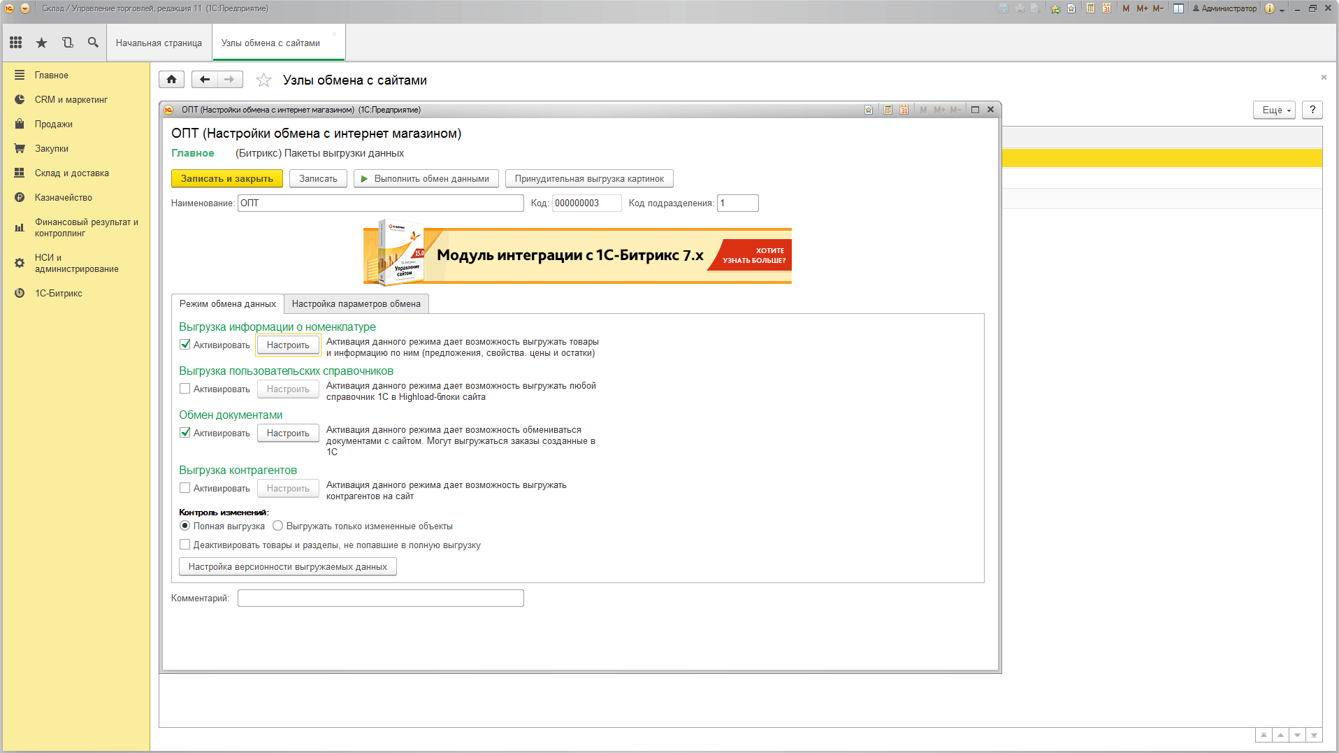 - Синхронизация с 1С «Общепит 8»