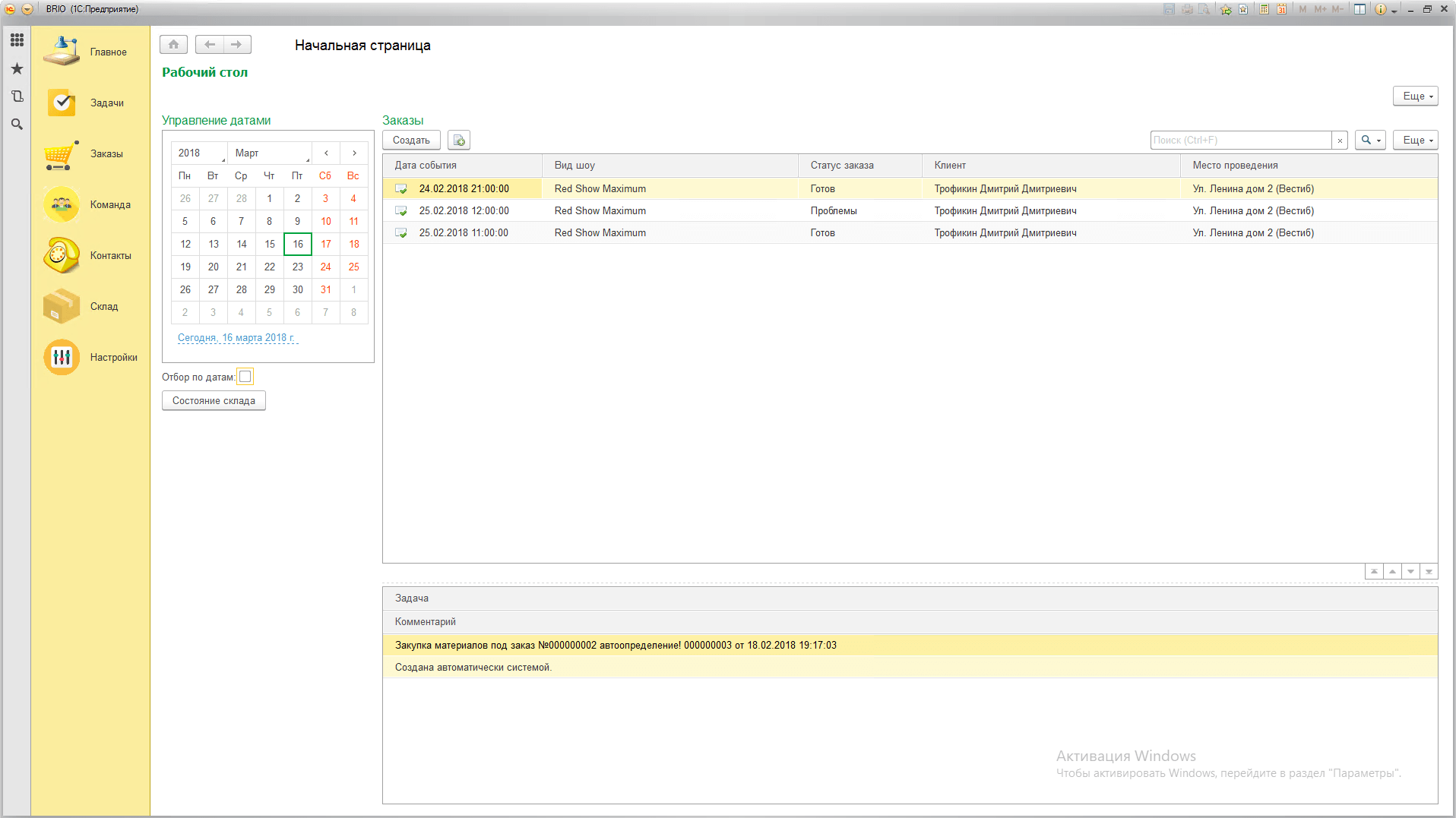 - - Управление складом