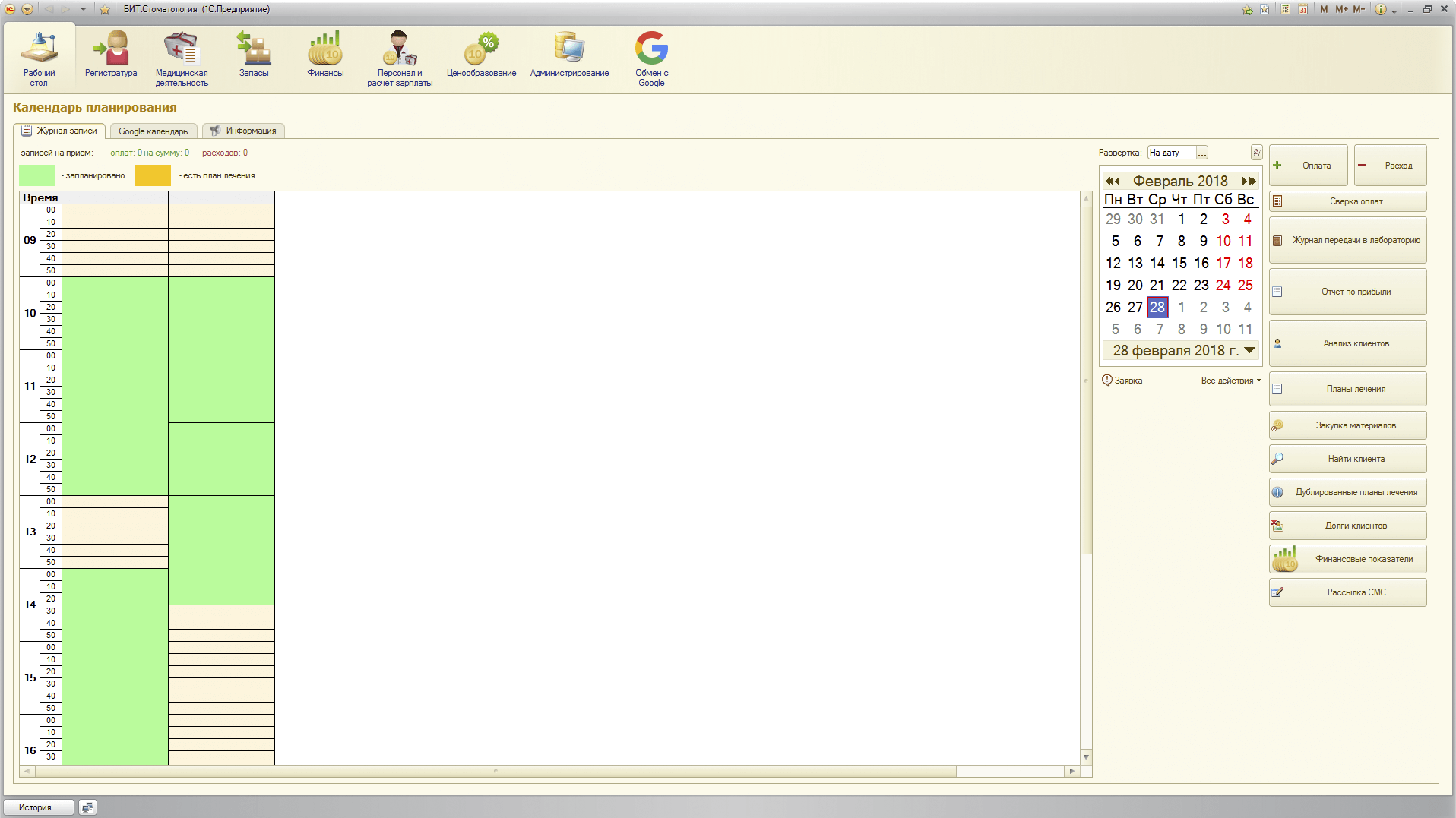 - - Управление расписанием, записью